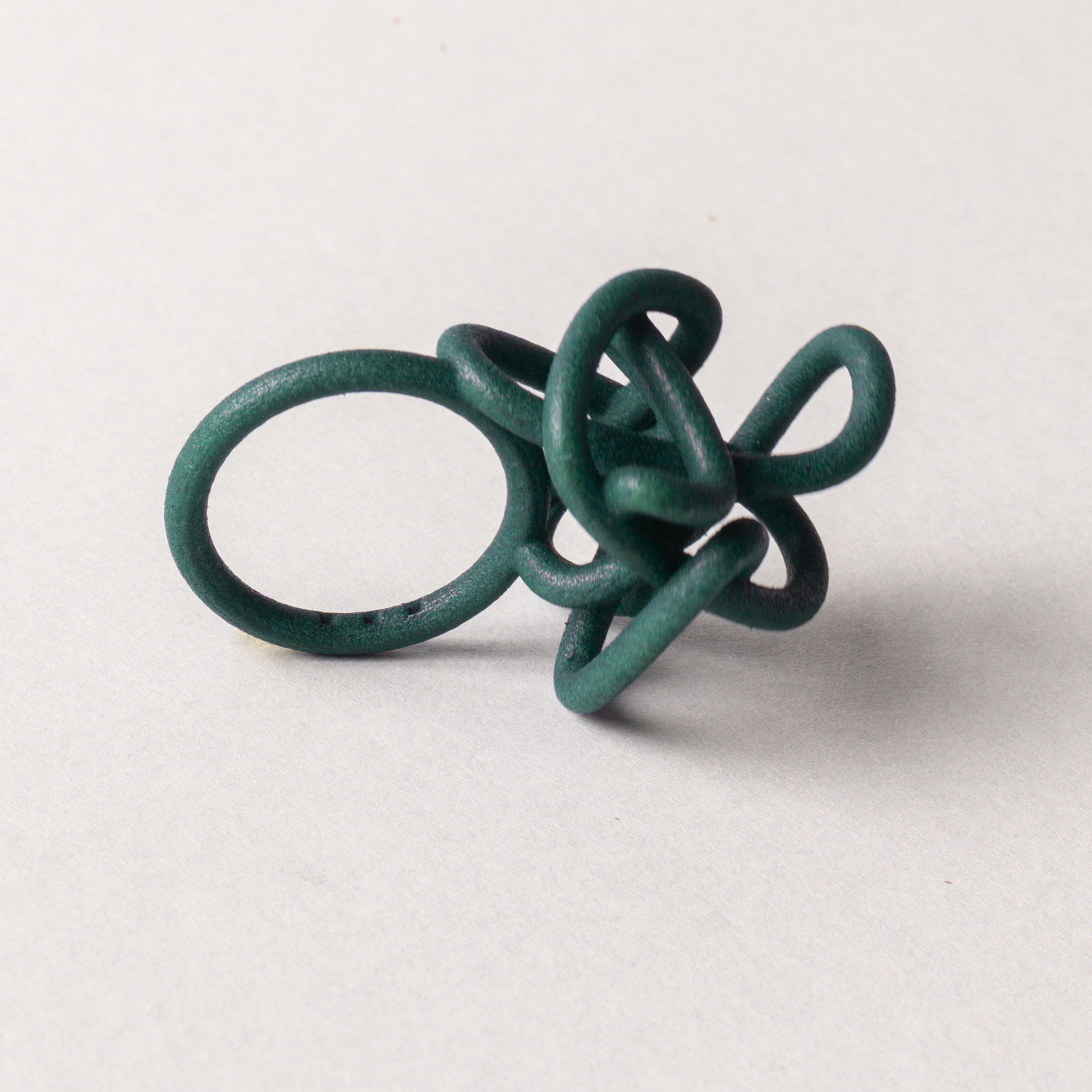 Gioiello realizzato da Maria Jennifer Carew, designer e artigiana friulana che realizza delle vere e proprie opere d’arte partendo da oggetti o gesti quotidiani. Un semplice scarabocchio fatto per noia si evolve in accessorio intricato, complesso, diverso.
