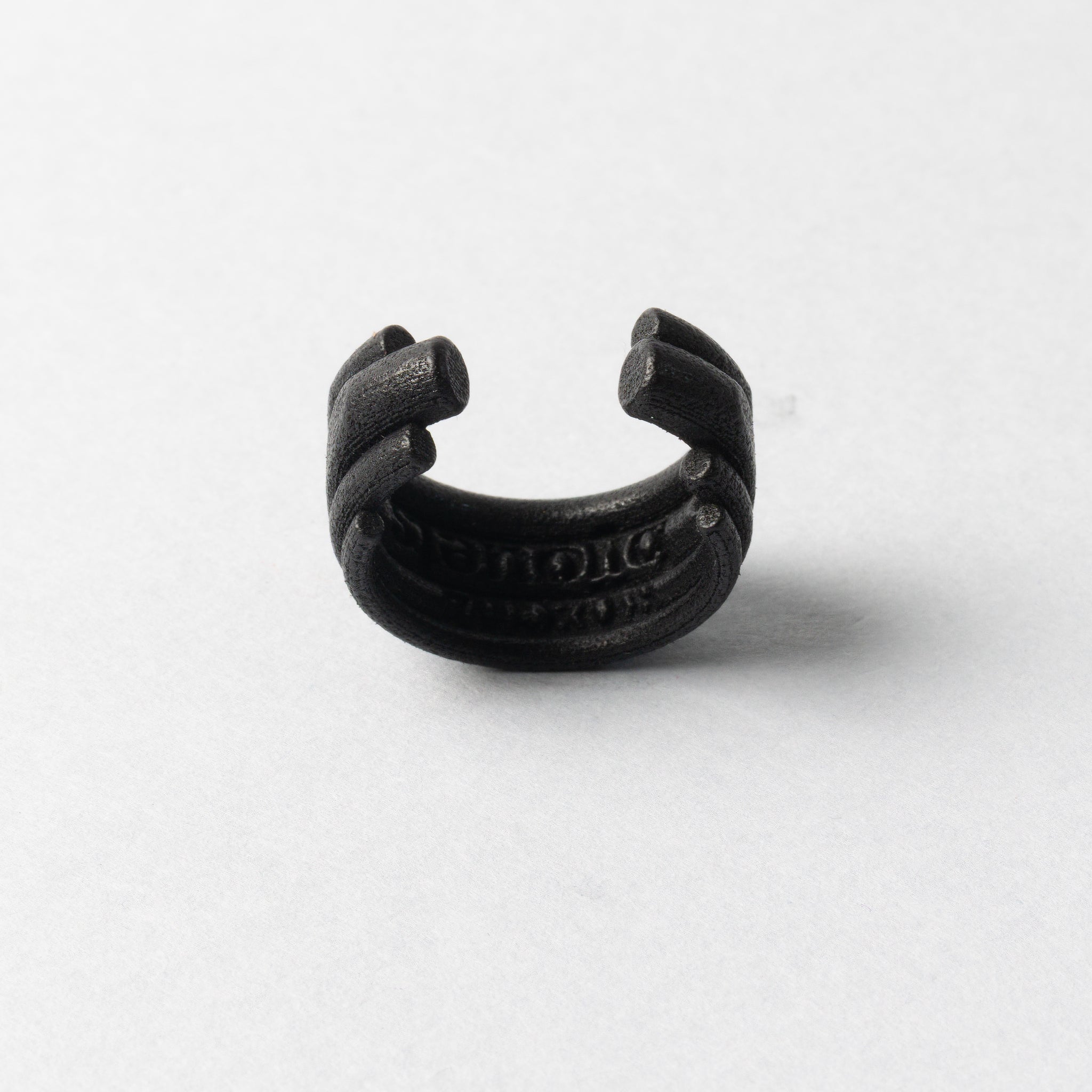 Gioiello della collezione Tubetti, realizzata in collaborazione con Sebastiano Cecarini e Joele Stecconi, creativi di Studio Box104 a Civitanova Marche, che questa volta si sono lasciati ispirare dall’antica tribù Kayan, a cui appartengono le “donne cigno”. La lunga spirale d’ottone che cresce attorno collo delle donne Kayan viene rivisitata e aperta per diventare finalmente un inno all’armonia e alla libertà; l’anello ha un inizio e una fine, caratteristica che gli permette di abbracciare il dito in cui viene indossato per adattarsi al meglio.