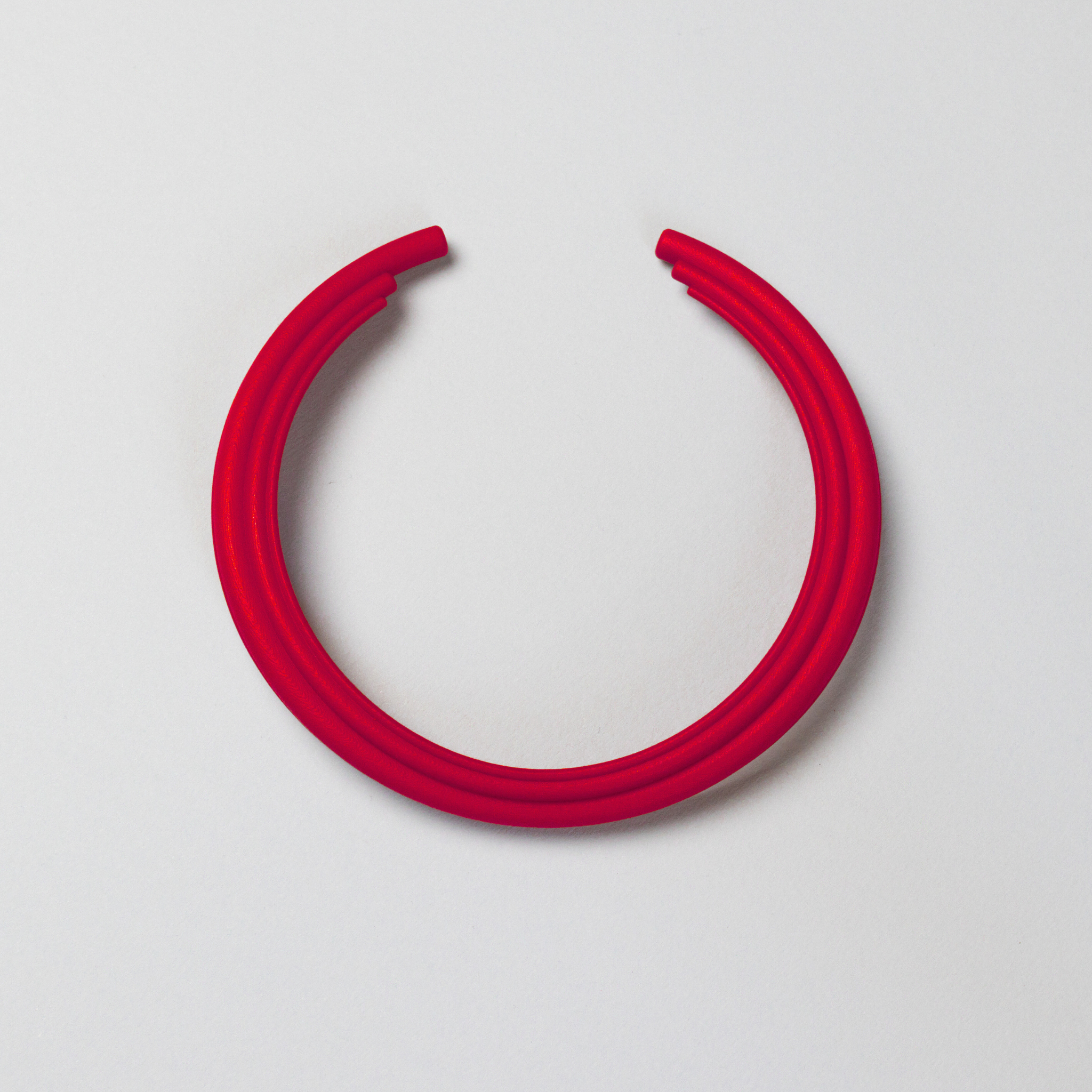 Gioiello della collezione Tubetti, realizzata in collaborazione con Sebastiano Cecarini e Joele Stecconi, creativi di Studio Box104 a Civitanova Marche che questa volta si sono lasciati ispirare dall’antica tribù Kayan, a cui appartengono le “donne cigno”.