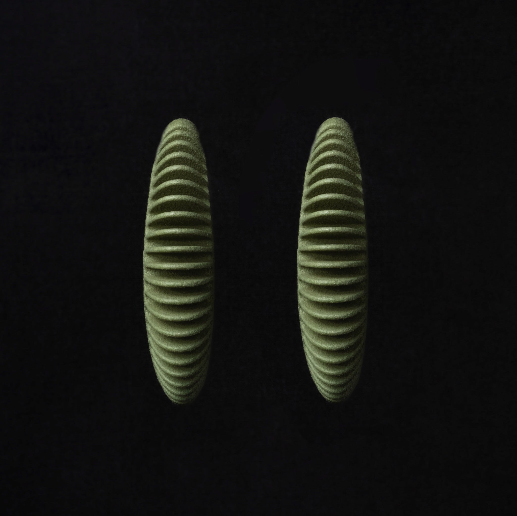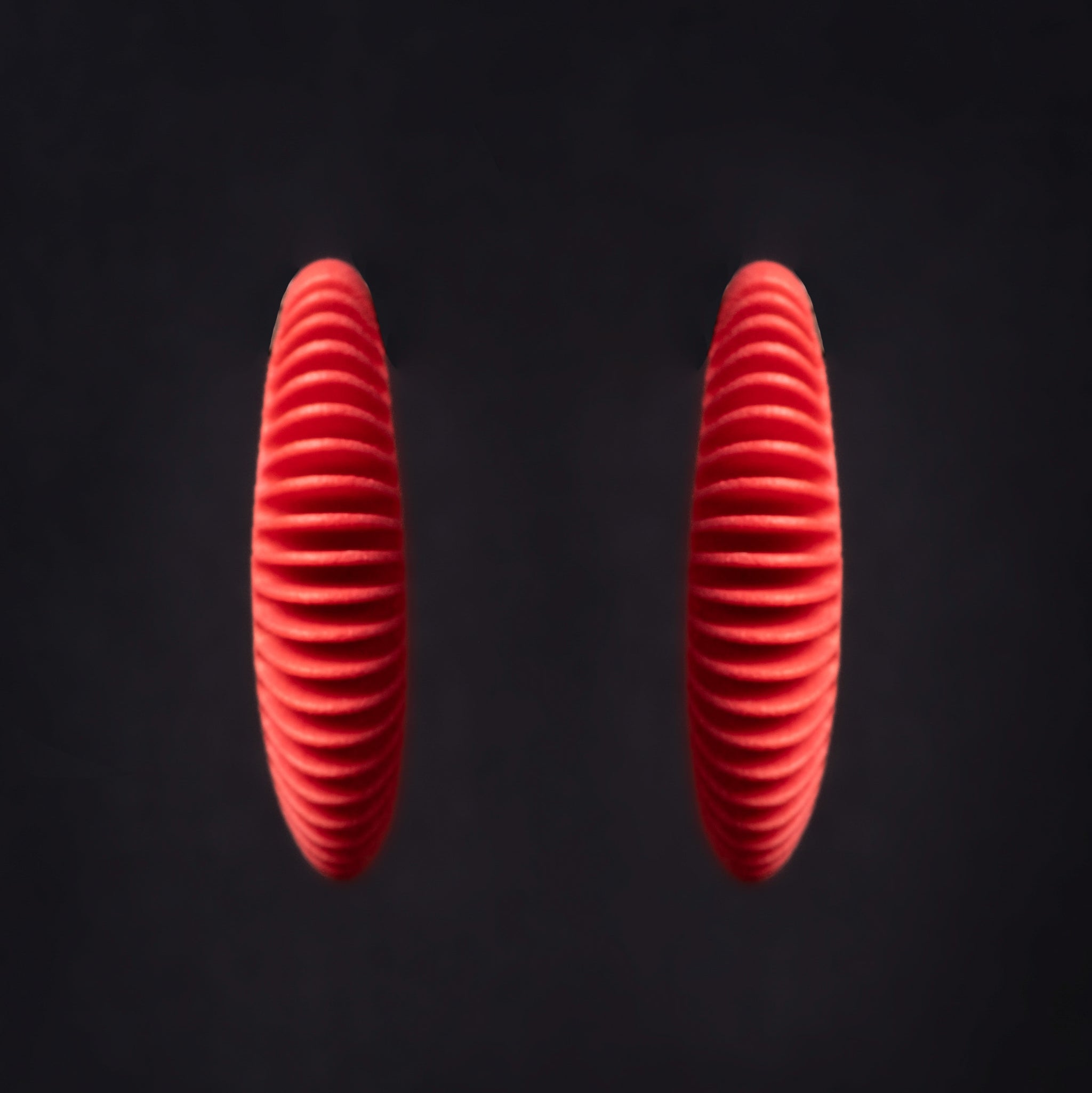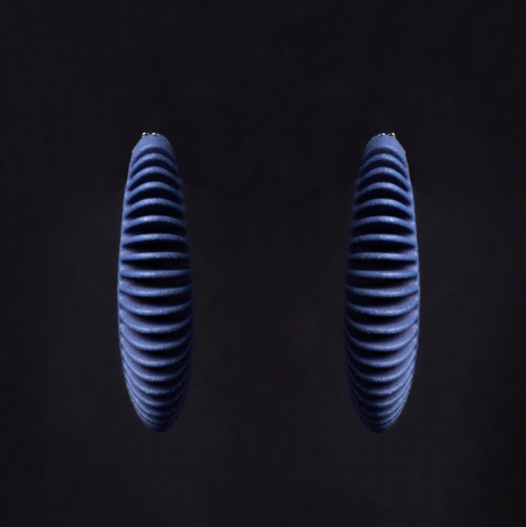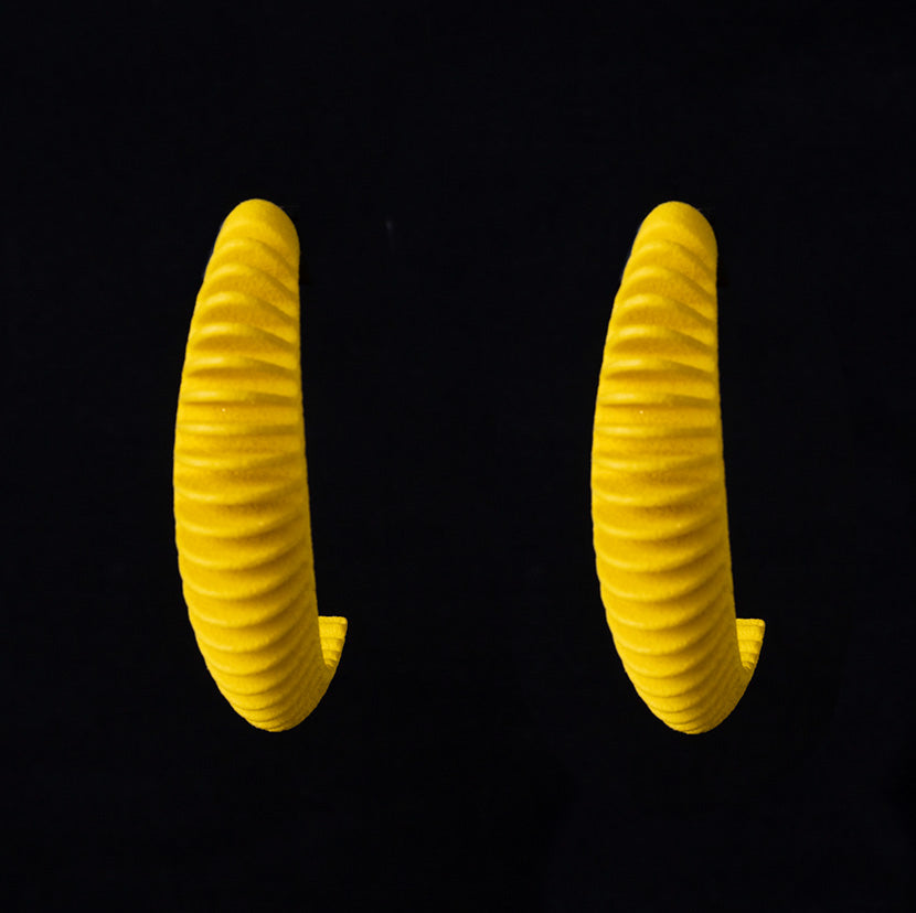 Orecchini stampati in 3D e rifiniti a mano.