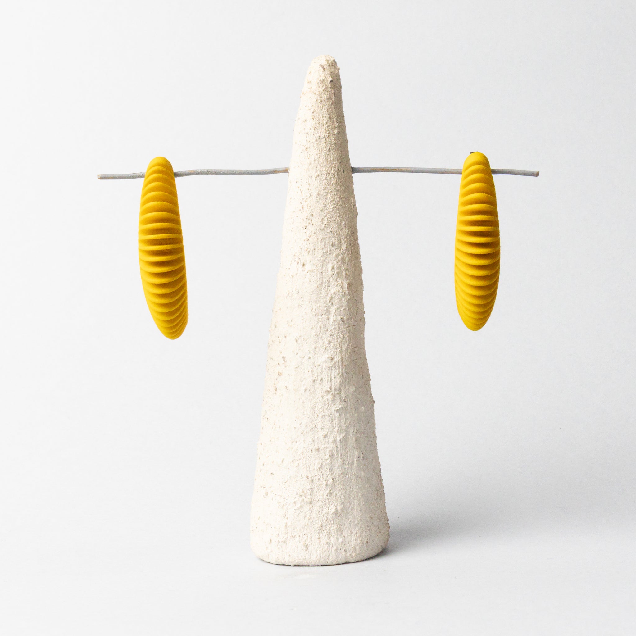 Orecchini stampati in 3D e rifiniti a mano.
