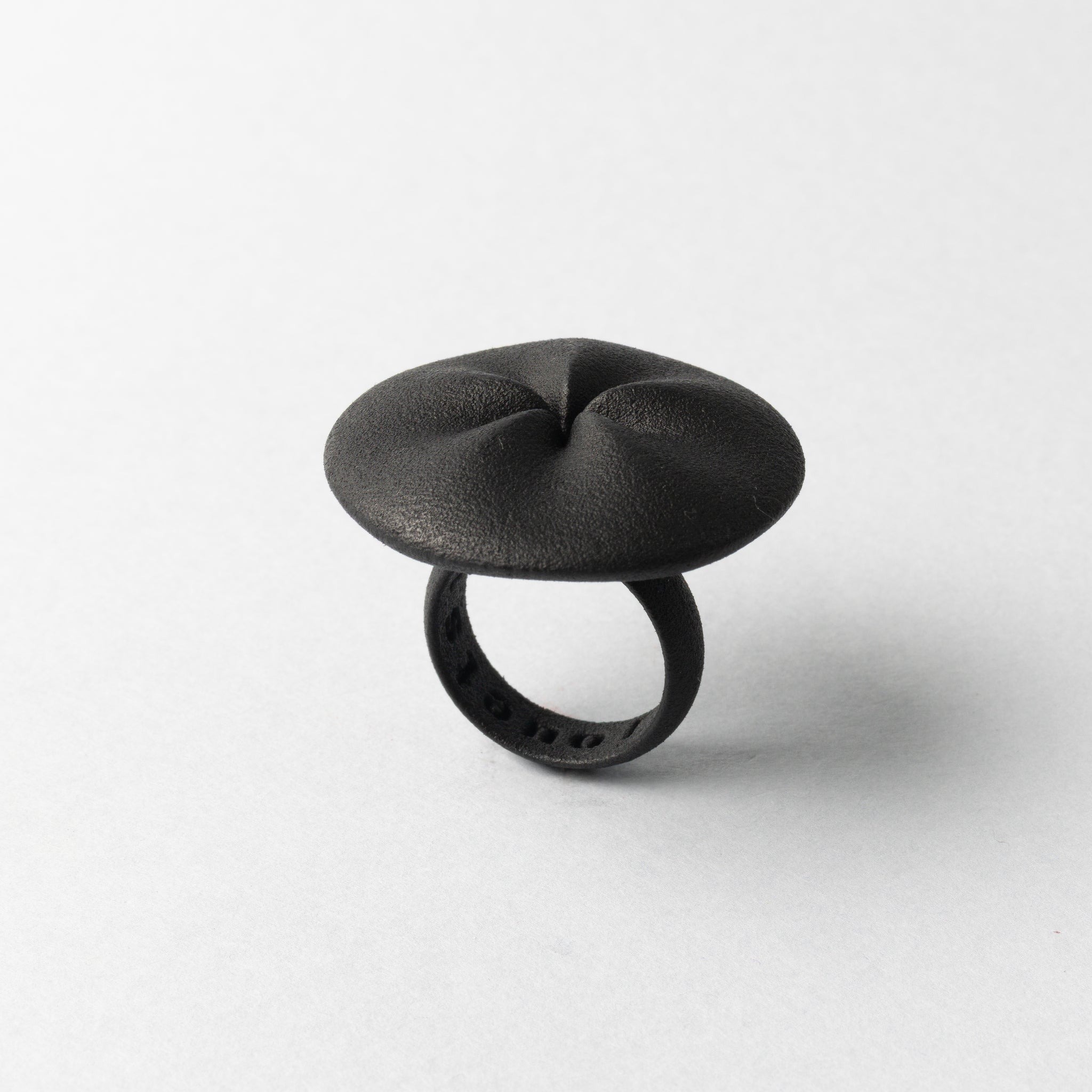 Gioiello della collezione Suite realizzata da Maria Jennifer Carew, designer e artigiana friulana che realizza delle vere e proprie opere d’arte partendo da oggetti o gesti quotidiani. Le linee di Suite assomigliano proprio a uno di quei bottoni che si trovano nei divani d’epoca, che spesso si trovano in salotti signorili.