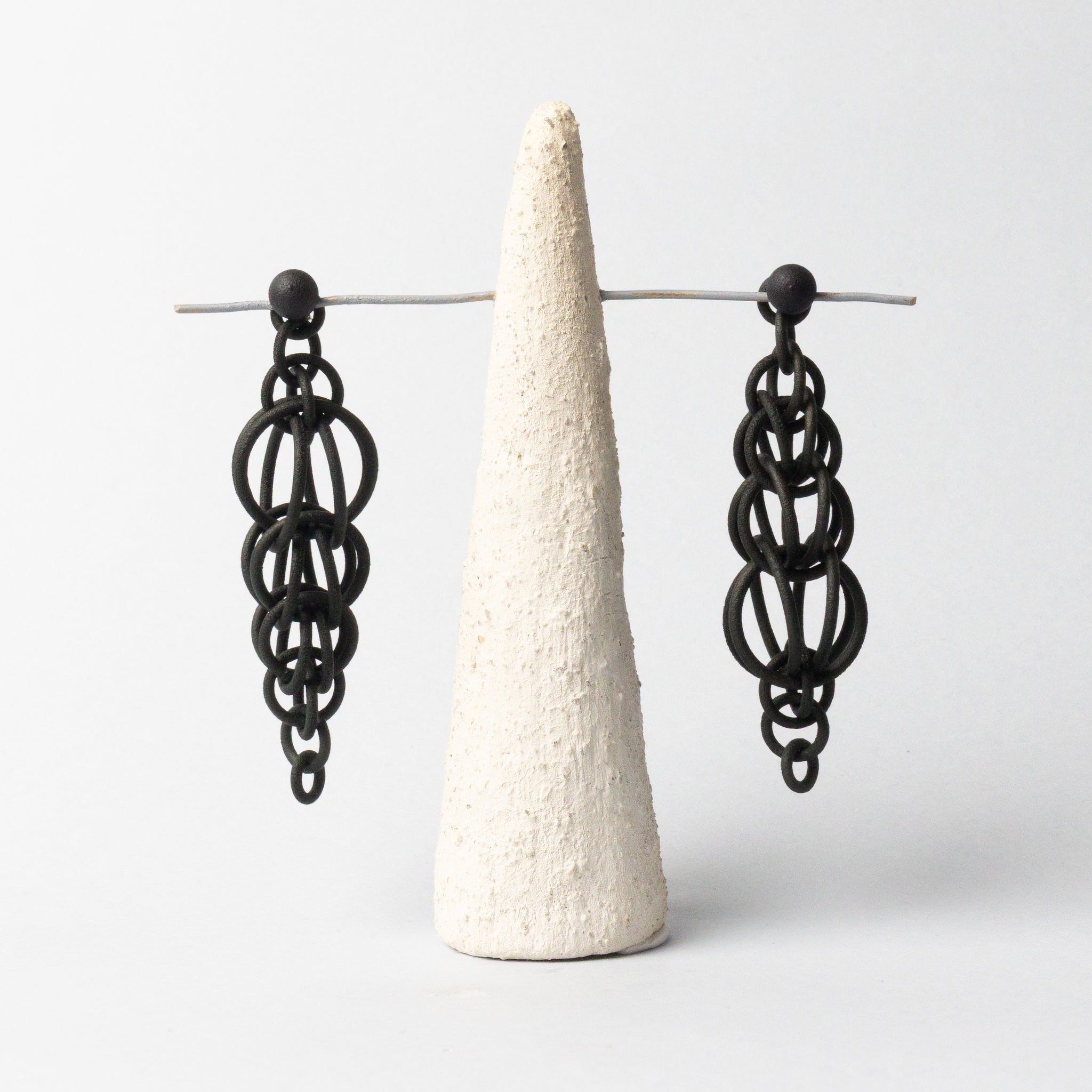 Gioiello della collezione Superleggera, linea della designer Monica Castiglioni che ha deciso di realizzare in nylon alcuni dei suoi gioielli in bronzo, donando loro la leggerezza unica che contraddistingue ogni accessorio .bijouets. Lo dice il nome stesso: ogni creazione è (super) leggera, merito sia del materiale utilizzato, che di un cerchio alleggerito nella sua essenza più pura.