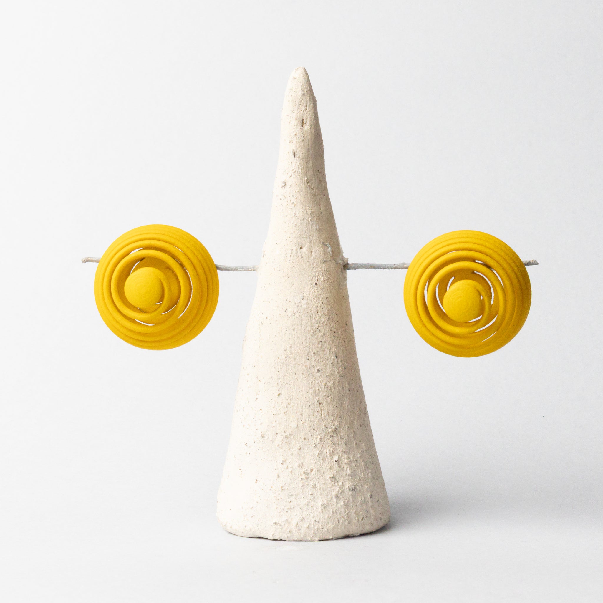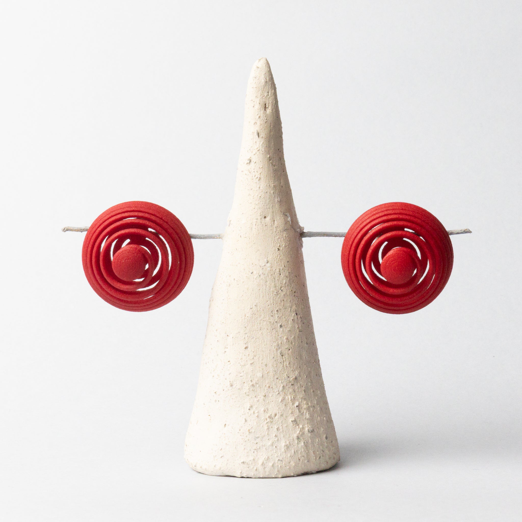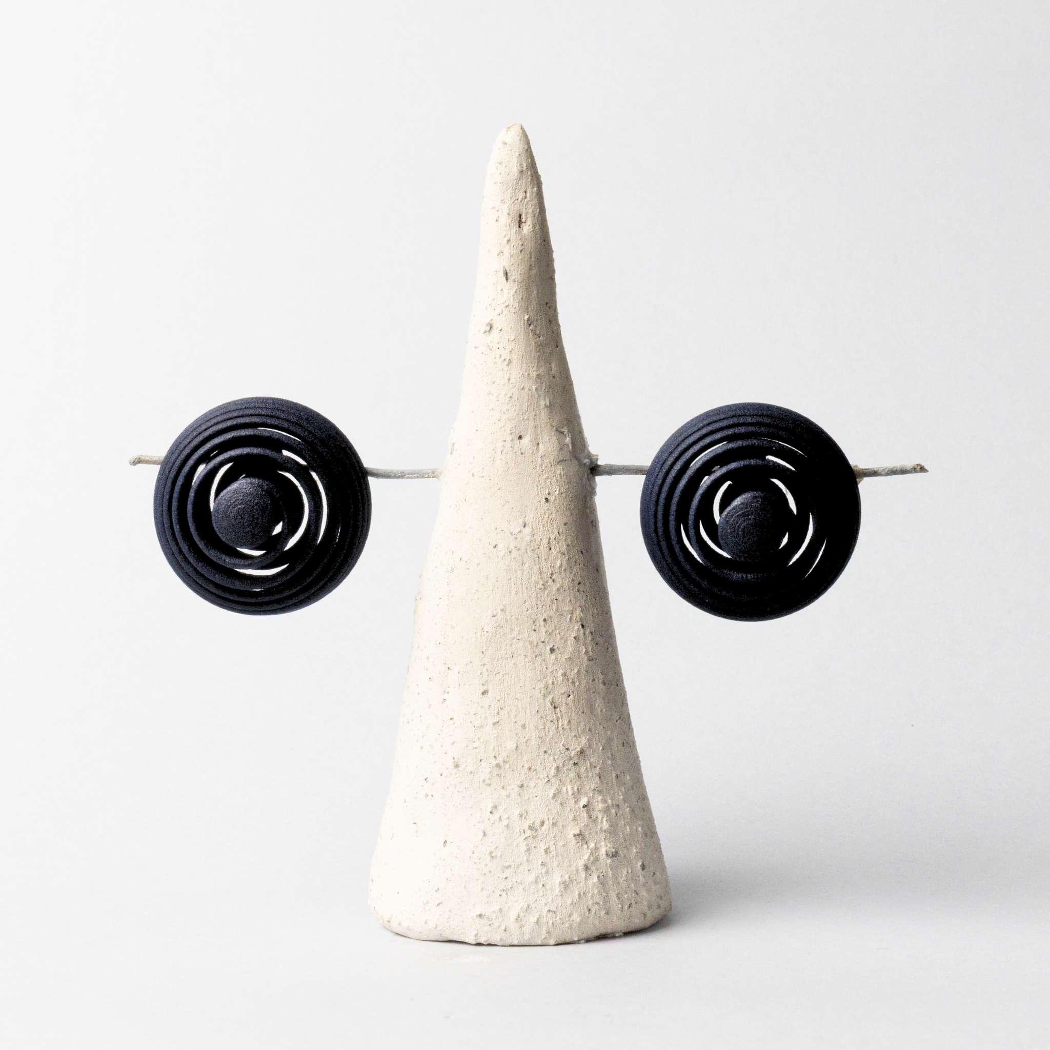 Orecchini stampati in 3D e rifiniti a mano.